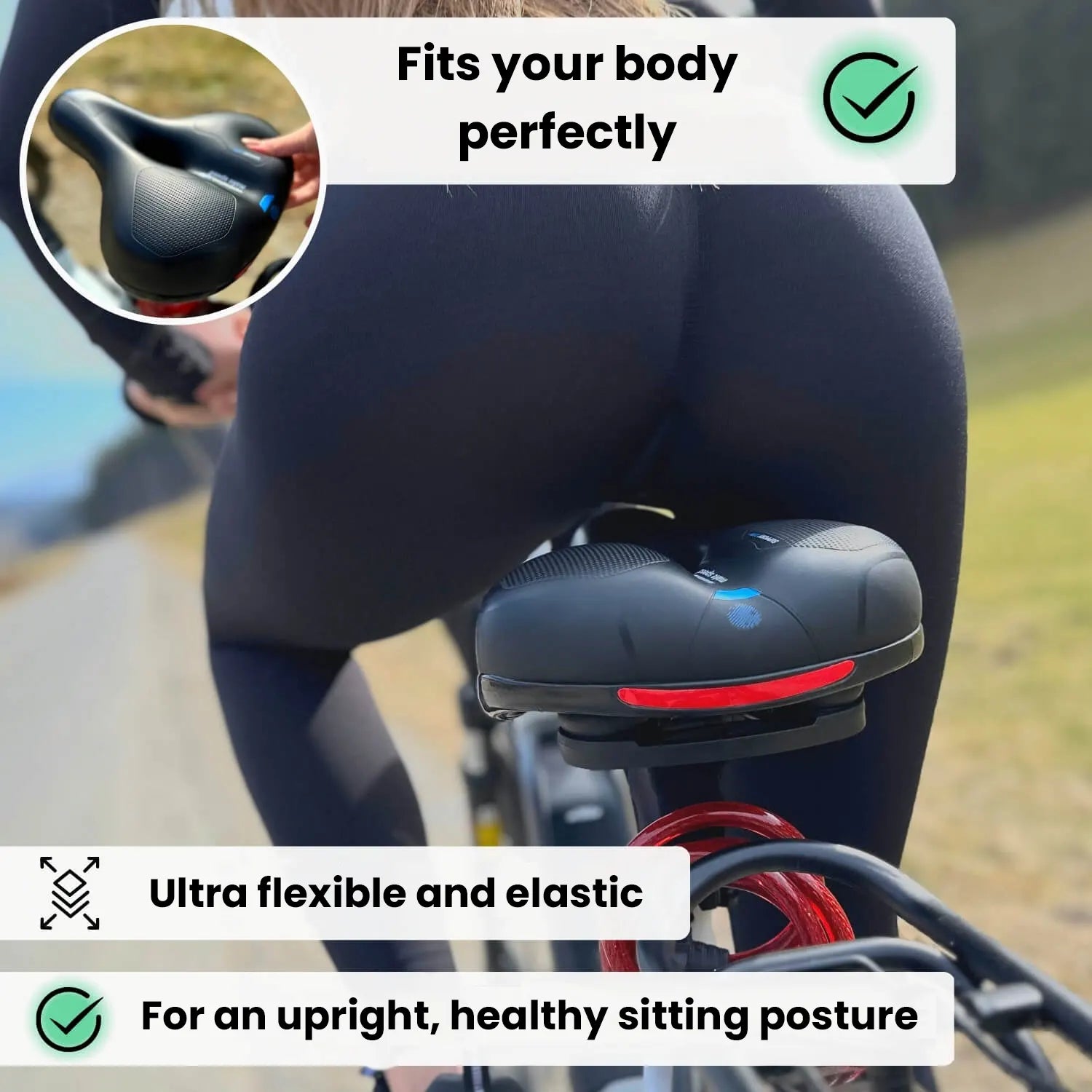 Test the incredible comfort of our TheShop bike seat without any risk and finally have fun and enjoy cycling again!