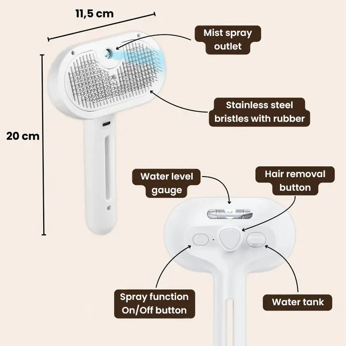 Furthermore, the mist and massaging effects improve blood circulation and help to distribute natural oils, making the coat healthier and shinier.